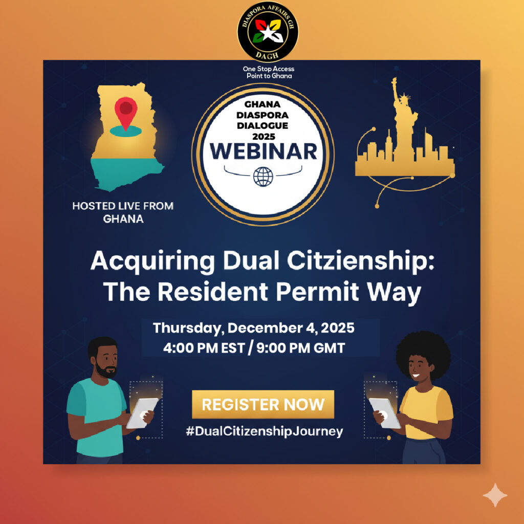 The Ghana Diaspora Dialogue is an annual event that brings together Ghanaians in the diaspora, Diasporas living in Ghana, and key stakeholders to discuss issues of mutual interest. This year’s Dialogue, themed “Dual Citizenship: The Resident Permit way,” will delve into the opportunities and challenges facing the diaspora community in Ghana.